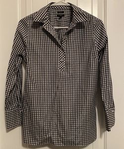 Talbots Non Iron Shirt Petite Size 2P Black White Metallic Plaid Long Sleeve$15Menifee, CA