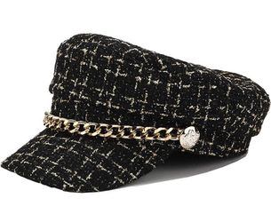Women Plaid-Tweed Newsboy-Baker-Boy Hat Captain-Sailor Fisherman Hat Peaked-Beret with Chain$10Lakewood, CA