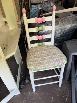 White Floral Painted Wooden Chair with Fabric Seat$40Dallas, TX