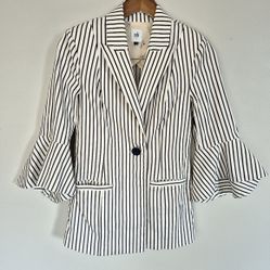 CAbi One Button 3/4 Bell Sleeve Blue White Stripe Jacket Blazer Size 2$42Fort Myers, FL