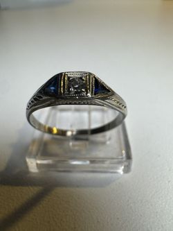 Antique Art Deco 1920s 14K White Gold Sapphire Diamond Ring Size 5.75$450Brooklyn, NY