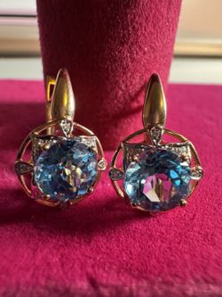 14k 585 Rose Gold Earrings / Blue Topaz & Diamonds – NEW Elegant Fine Jewelry$650Brooklyn, NY