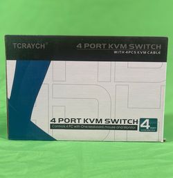 TCRAYCH BLACK 4 PORT KVM SWITCH w/ 4PCS KVM CABLE$20Helper, UT