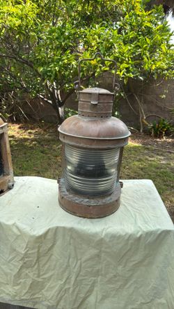 Antique 24” Tall A Ward Hendrickson Lantern Masterhead Clear Glass Lens Nautical Ship Metal Deco Ship Lamp Light $700Carlsbad, CA