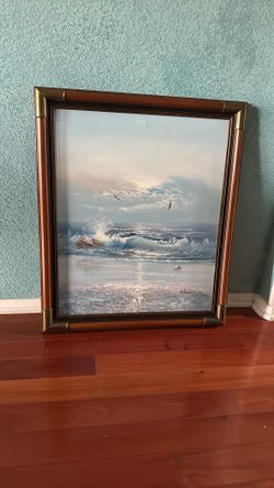 Large Oil Painting Seascape Beach Shore Wood Frame 23 1/2” X 27 1/2” Oil On Canvas $300Oceanside, CA
