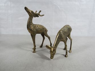 Vintage Buck & Doe Spotted Deer Solid Brass MCM Statues Figurines