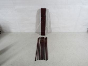 Old/Vintage Chinese 9 Chopsticks & Original Sculptured Rosewood Case