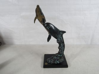 Dolphins on Wave Solid Brass Vintage SPI Statue 13" Tall
