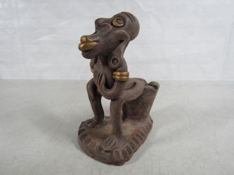 African Native Tribal Folkart Clay Sculpture Incense Burner Ashtray