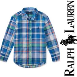 RALPH LAUREN Boys Button Up Long Sleeve Blue Red Green Plaid Poplin Shirt Size 3$15Melbourne, FL