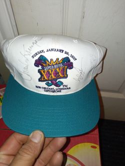 Vintage super bowl 31 New Orleans Superdome hat autographed by Charlie Kruger Glen carino and ed to tall Jones$100Grand Prairie, TX