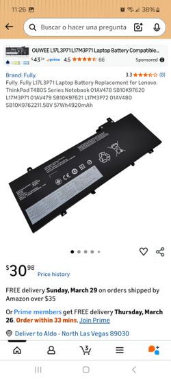 Replacement laptop battery, specifically model L17L3P71 for the Lenovo ThinkPad T480S series.