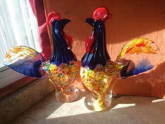Antique Vintage 13" Heavy Glass Roosters $50Joliet, IL