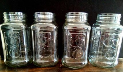 Set 4 Vintage Square Mason Jars Clear Quart Glass Raised Embossed Tomato Design$30Chesapeake, VA