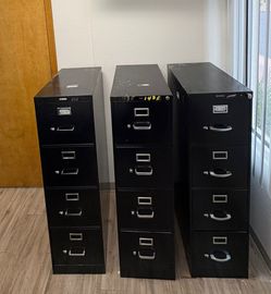 4-drawer vertical file cabinet, Office Dimensions Commercial or Hirsh model in black. 12 AVAILABLE IN STOCK !!!!$50Henderson, NV