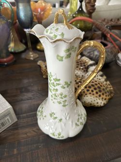 Antique HAVILAND LIMOGES Chocolate Pot Teapot Green Flowers Gold Ribbon$250Carlsbad, CA