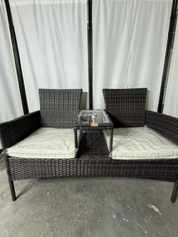 🌿 Rattan Outdoor Loveseat – BEIGE OR RED Cushions Patio Sofa 🪑☀️ $110Winder, GA