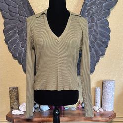 Dynamite Olive Ribbed V-Neck Sweater Top