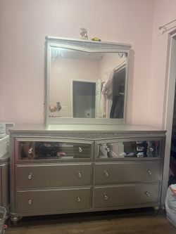 Silver Glam Dresser with Mirror – Great Condition$300Perris, CA