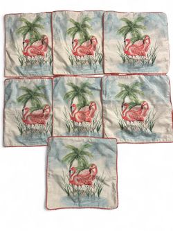 Set of 7 vintage Cynthia Rowley flamingo texture square pillow cushions covers in pink and blue hues$50Canyon Country, CA