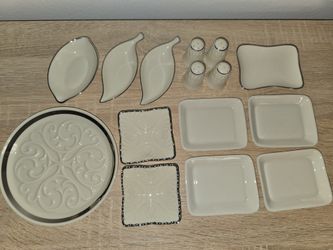 Lenox USA Ivory Serving Set 15 Pc Platinum Trim Bowls Plates$35Halndle Bch, FL