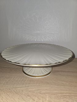 Lenox Pedestal Cake Stand Ivory Gold Trim USA Vintage Serving Plate$25Halndle Bch, FL