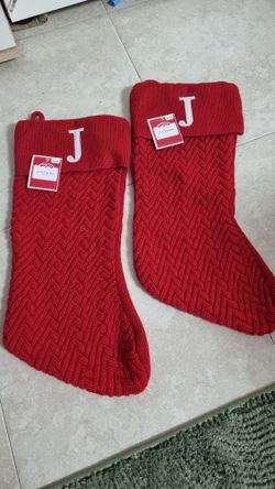 Red Knit Christmas Stocking Monogram J – Holiday Decor, New With Tag$10Halndle Bch, FL