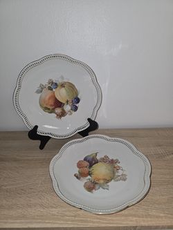 Schumann Germany Fruit Plates Set 2 Gold Trim Reticulated Edge$20Halndle Bch, FL