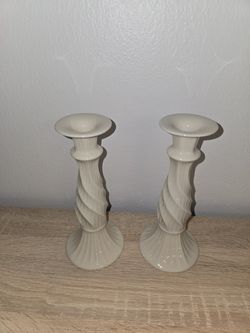 Lenox Candle Holders Pair Ivory Porcelain Vintage USA Elegant$25Halndle Bch, FL