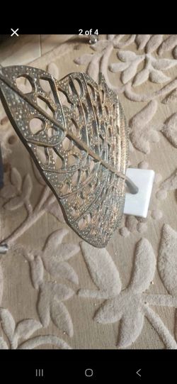 Decorative metal sculpture designed in the shape of a leaf, mounted on a rectangular base.$55Katy, TX