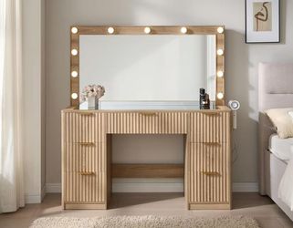 🟢 Fluted Makeup Vanity Desk with Large Mirror and Adjustable LED Lights$150Gillem Enclave, GA