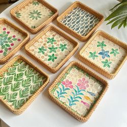 Wicker woven colorful shells, Nordic creative handcrafted fruit plate, decorative item, jewelry storage tray, tea tray, square plate$119Queens, NY