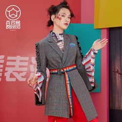 Gray Plaid Belted Blazer, Ruffle Sleeve Statement jacket Chic Street Fashion$50New York, NY