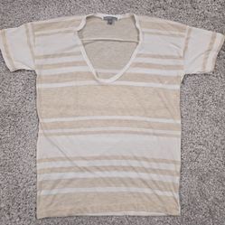 James Perse Top Womens 3 (Large) Tan White Striped Short Sleeve Scoop Neck $55Waterbury, CT