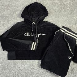 Champion Sweatshirt and Pants Set Womens Medium Black Corduroy Reverse Weave