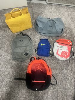Six Different Bags: Under Armor Duffel, Jordan Backpack, Nike Lunchbox, Vans Backpack, Yellow Tote, And Kids Backpack. $100Edmonds, WA