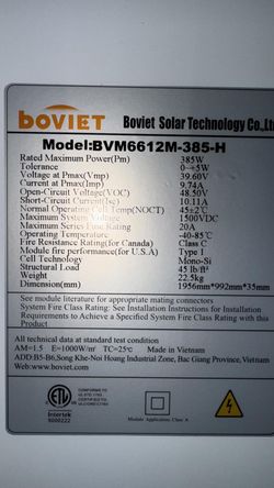 385W Boviet Solar Panels – Premium Quality – Only 15 Left$140Fort Lauderdale, FL