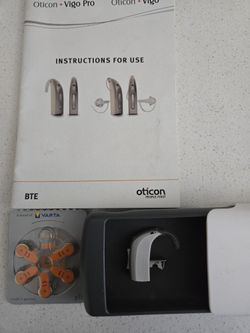 OTICON VIGO PRO HEARING AID. SINGLE WITH BATTERIES CASE AND BOOK.$70South Gate, CA