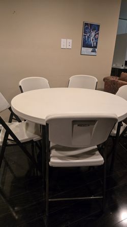 Lifetime Round Commercial Folding Table and 5 Lifetime Folding Chairs$350Fallbrook, CA
