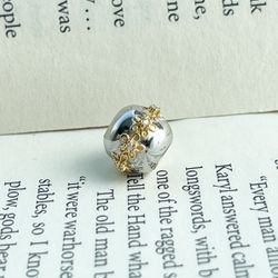 Polished Charm Bead with Gold Flower Accents & Diamond Centers, Elegant Design, Fits Pandora Bracelets$15Queens, NY