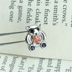 Polished Teddy Bear Charm Bead with Red Heart Diamonds, Cute & Sparkling Design, Fits Pandora Bracelets$15Queens, NY