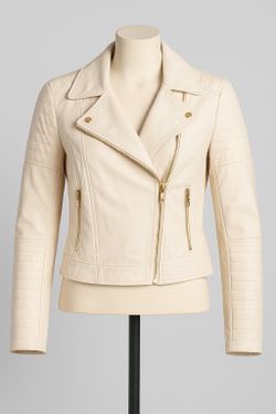 Bisou Bisou Cream Faux Leather Moto Jacket - Size Medium$20Downing, WI