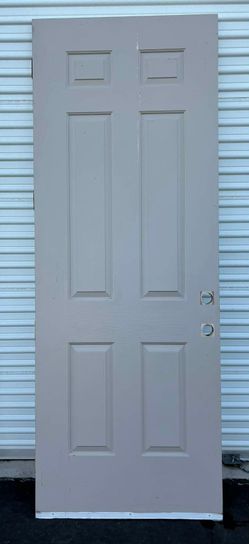 White, six-panel, primed steel, pre-hung exterior door. It features a right-hand inswing configuration. The approximate dimensions are 36 inches in $350Henderson, NV