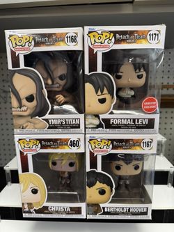 Funko Pop! Animation Attack on Titan GameStop Excl. Ymir's Titan, Levi, Christa…$48San Dimas, CA