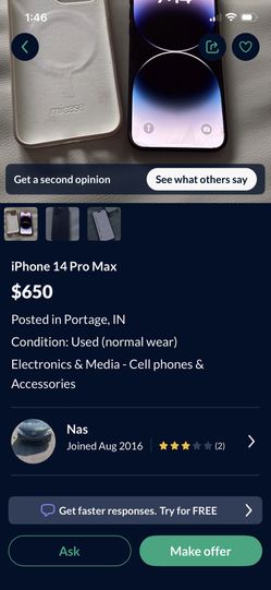 iPad Pro 13 Inch 256 Wife And Date. (unlocked)$1,200De Motte, IN