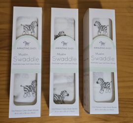 Brand New Amazing Baby - Sensory Muslin Swaddle Blanket, Premium Cotton, 3pack.