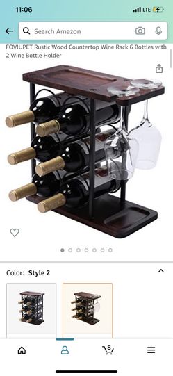 Rustic Wood Countertop Wine Rack 6 Bottles with 2 Wine Bottle Holder$20Santa Ana, CA