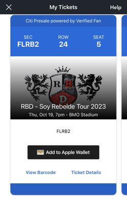 RBD Tickets OCT 19$425Los Angeles, CA