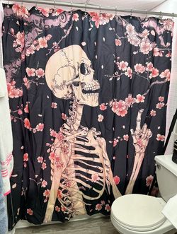 Skull Cherry Blossom Shower Curtain Pink Flower Spooky Gothic Skeleton Rustic Vintage Black 4pc set$30Austell, GA