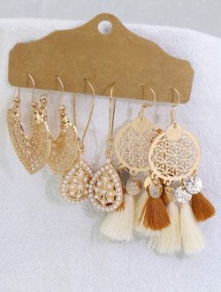 3pairs Bohemian Western Style Tassel Earrings Set Women's Festival Accessories$10Killeen, TX